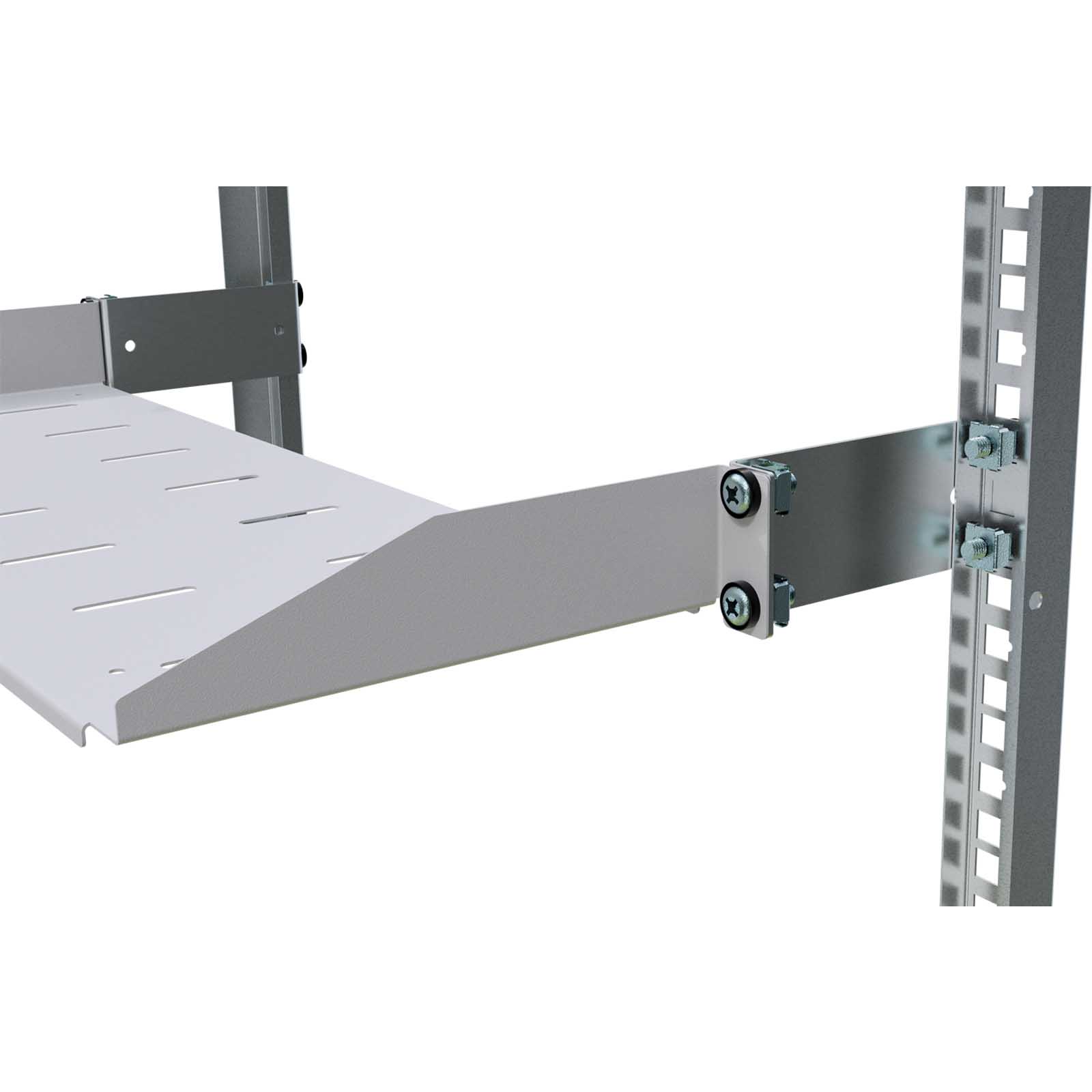 Kompatybilność z urządzeniami o wysokości 1U oraz standardowymi szafami rackowymi 10" i 19". Elastyczność montażu Umożliwia przesunięcie zamontowanego sprzętu w głąb lub wysunięcie go o 100 mm względem ramy rack, co daje dużą swobodę w organizacji przestrzeni. Solidna konstrukcja Wykonany z grubej, ocynkowanej blachy o grubości 1,5 mm, zapewniającej długą żywotność i odporność na obciążenia. Łatwy montaż Prosty w instalacji, nie wymaga specjalistycznych narzędzi, co oszczędza czas i ułatwia użytkowanie. Lepsze zarządzanie przestrzenią Pomaga w optymalizacji układu sprzętu, co jest szczególnie ważne w środowiskach z ograniczoną przestrzenią. Najważniejsze cechy: