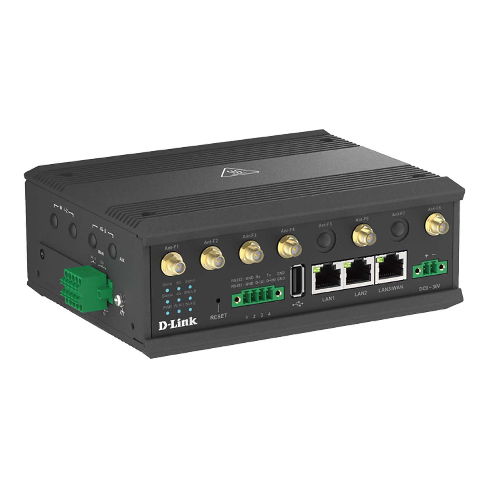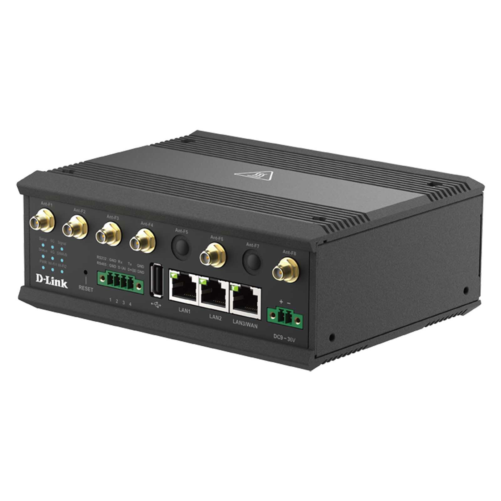 D-Link DOM-550-GSO to brama 5G IoT. Brama DOM-550-GSO 5G IIoT oferuje łączność w trybie podwójnym 5G NR i 4G LTE, zapewniając prędkość pobierania do 3,4 Gb/s. Posiada 3x porty Gigabit Ethernet — jeden z nich można skonfigurować jako Ethernet WAN — umożliwiające płynne przełączanie między sieciami szerokopasmowymi i komórkowymi. Dzięki obsłudze WiFi 5 (AC1200) nadaje się do szerokiego zakresu wdrożeń IIoT. Brama zapewnia również elastyczne opcje wejść/wyjść, w tym jeden port RS 232/485, dwa wejścia cyfrowe, dwa wyjścia cyfrowe, dwa wejścia analogowe, a także gniazda USB 2.0 i kart SD, dzięki czemu idealnie nadaje się do różnych scenariuszy integracji IT/OT.
