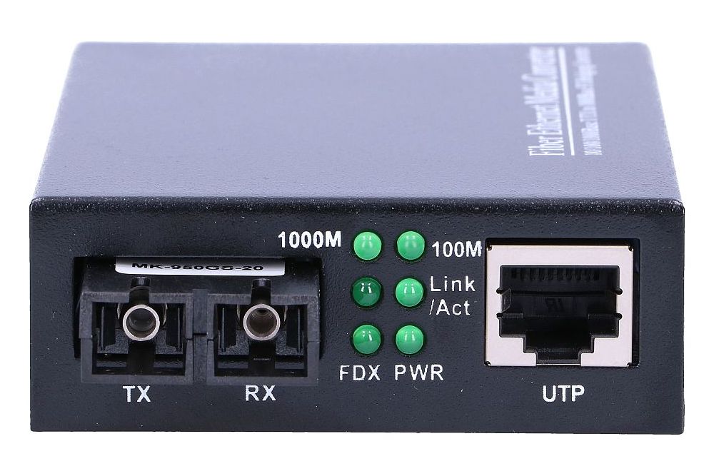 Konwerter światłowodowy ethernet (media konwerter) Option MC200 umożliwia połączenie segmentu sieci ethernet 10/100/1000base-Tx (skrętka) z segmentem sieci 1000base-FX (światłowód) i odwrotnie. Współpracuje ze światłowodem wielomodowym umożliwiając realizację połączenia światłowodem o długości do 550m. Główne cechy: