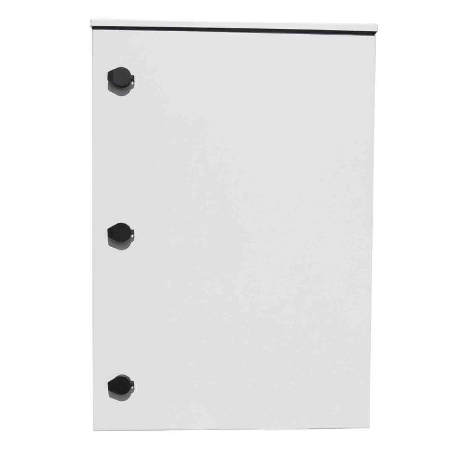 Szafka zewnętrzna Rack 19, 12U, z wentylacją, SM-80-55-45 to szafa odporna na korozję (5 letnia gwarancja), hermetycznie zamykana, wykonana z blachy z powłoką Magnelis o grubości 1,5 mm w kolorze jasnoszarym. Najważniejsze cechy: