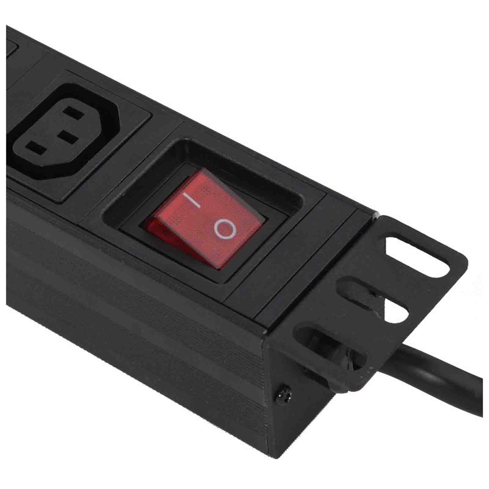 Listwa zasilająca z 9 gniazdami UPS typu C13 i kablem o długości 1.8m, przeznaczona do montażu poziomego w szafie rack. Wysokość 1U. Solidna obudowa wykonana jest z wytrzymałego plastiku w kolorze czarnym, gniazda są wykonane z ABS. Do listwy dołączony jest zestaw śrub mocjących wraz z koszyczkami i podkładkami. Listwa posiada podświetlany wyłącznik, który pozwala na szybkie odłączenie zasilania od wszystkich gniazd.