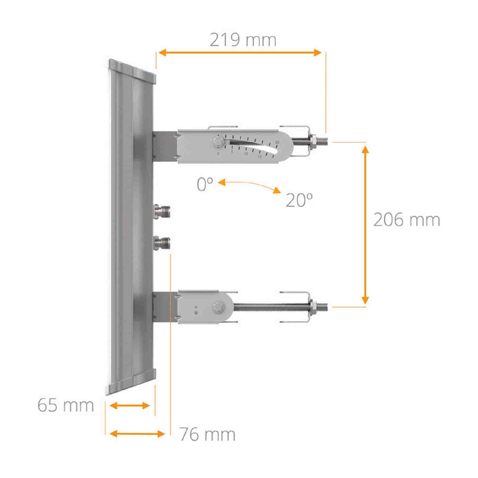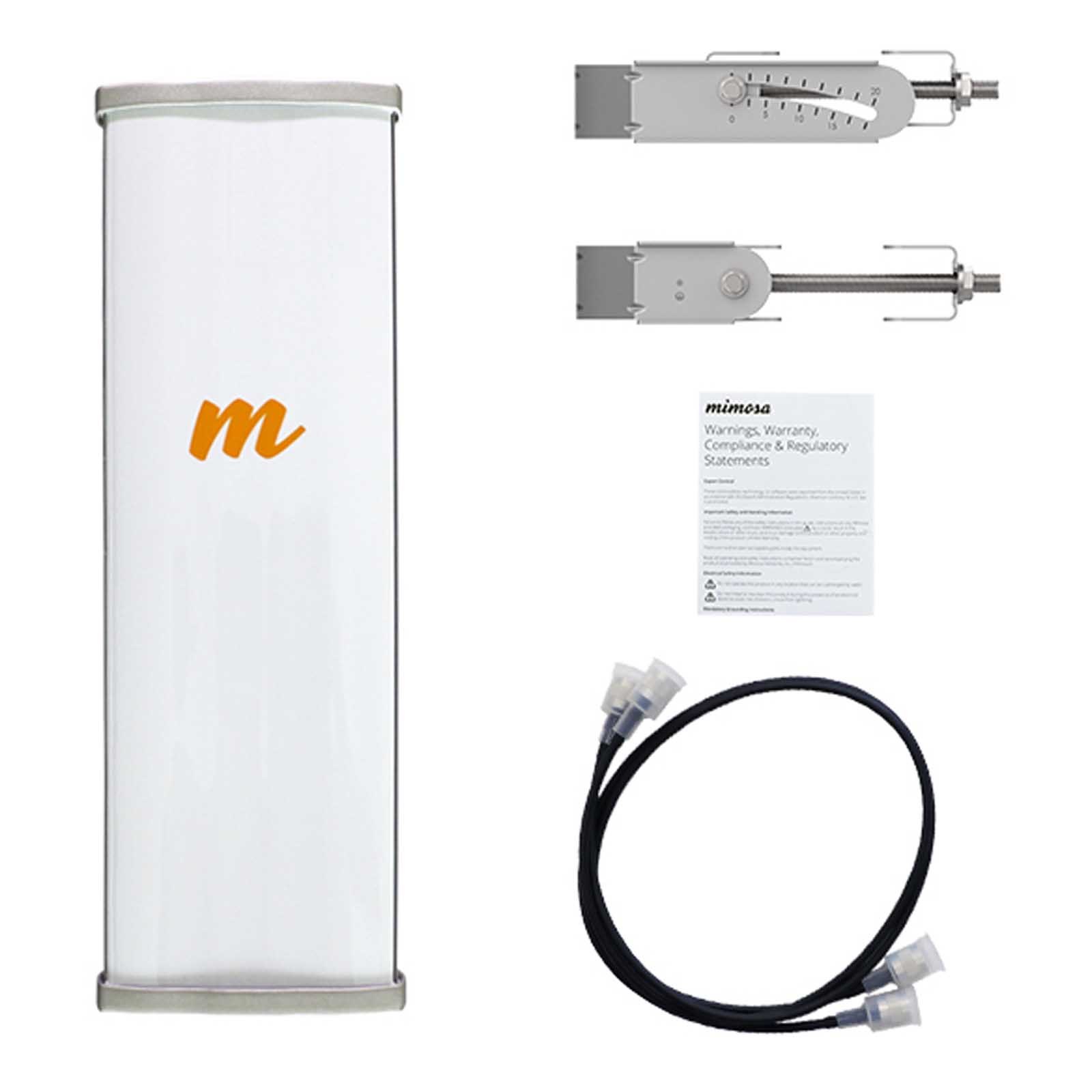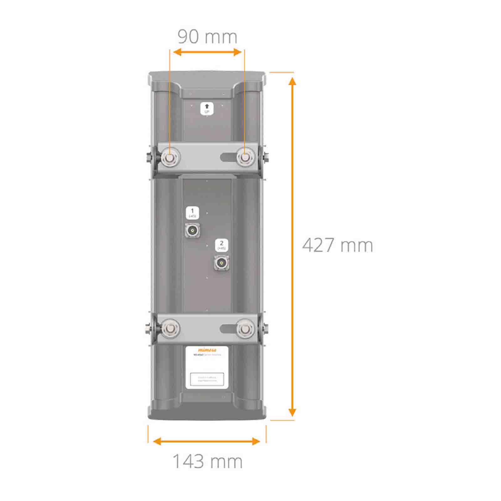Mimosa N5-45x2 to antena sektorowa pracująca w paśmie 5 GHz (4,9 - 6,4 GHz). Posiada podwójną polaryzację 2x2 MIMO skośną (slant) 45°, dzięki czemu jest bardziej odporna na zakłócenia niż standardowe anteny z polaryzacją pionową i poziomą. Zysk energetyczny anteny wynosi 19 dBi, a szerokość wiązki głównej 45°, co ułatwia stworzenie sieci bezprzewodowej dla dużego zagęszczenia użytkowników. N5-45x2 zapewnia wiodące w branży tłumienie listków bocznych i bezprecedensową wydajność 43 dB przód-tył (FTB) - najwyższy współczynnik FTB spośród wszystkich anten sektorowych lub tubowych w branży.