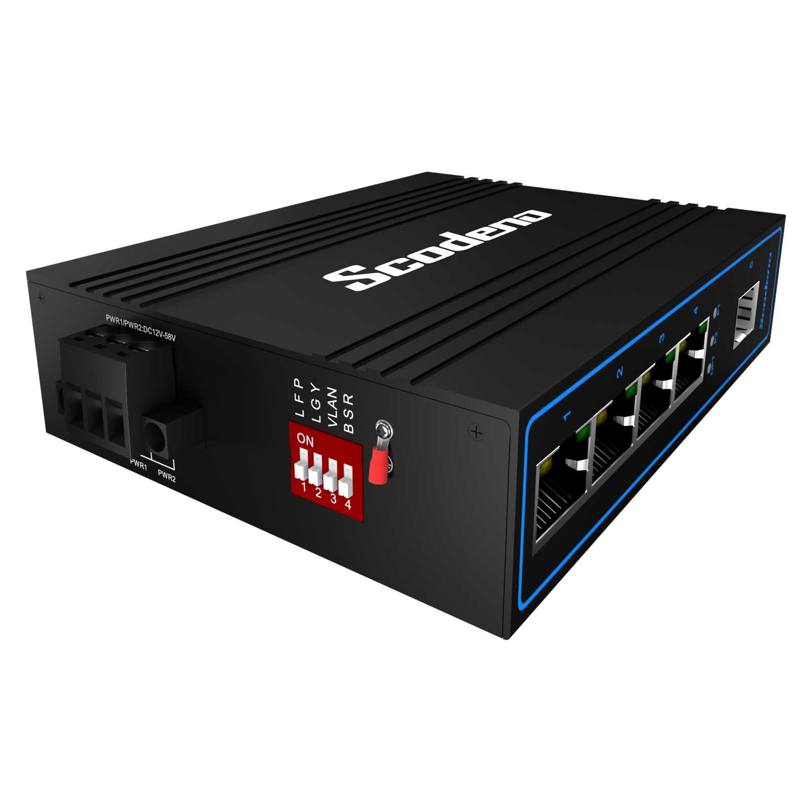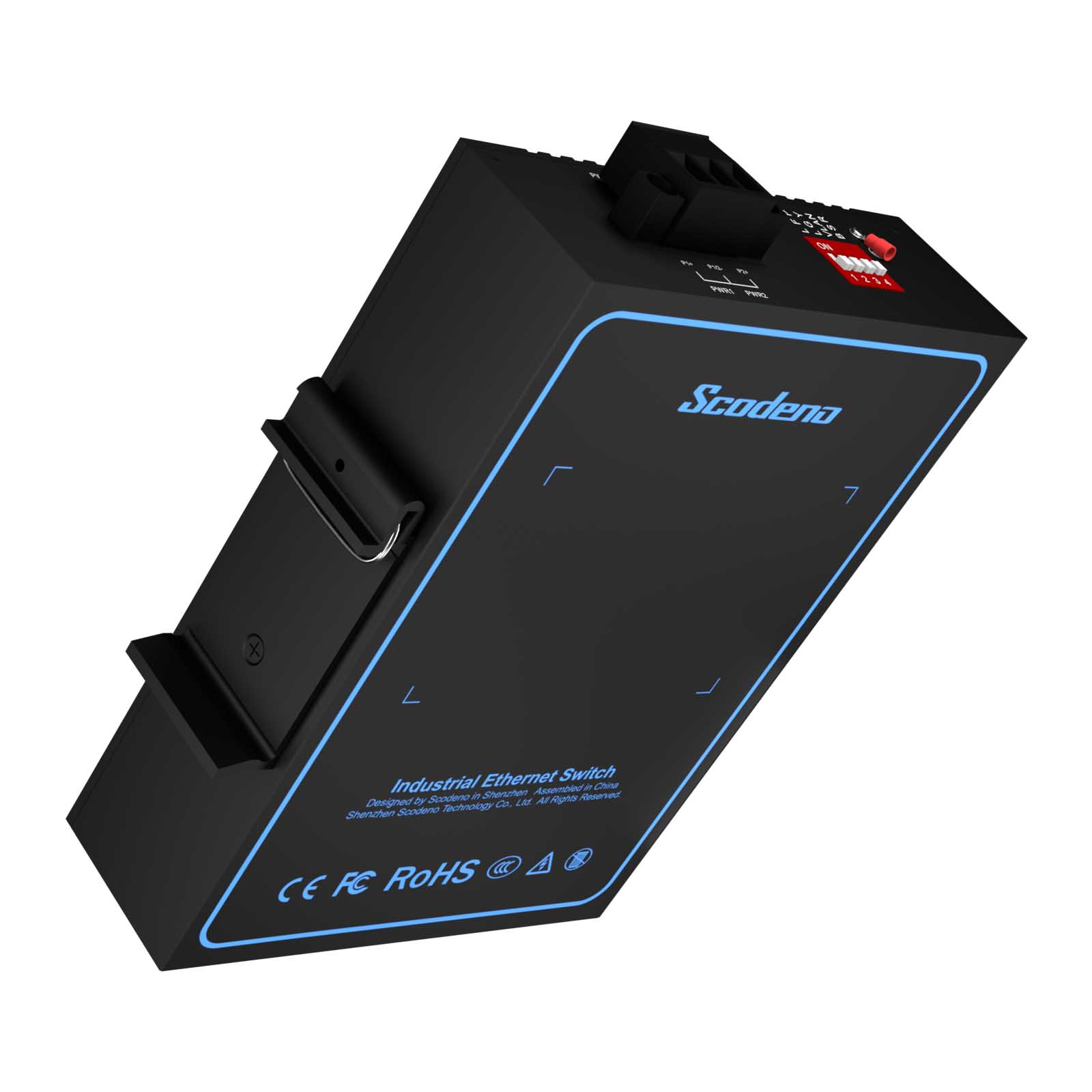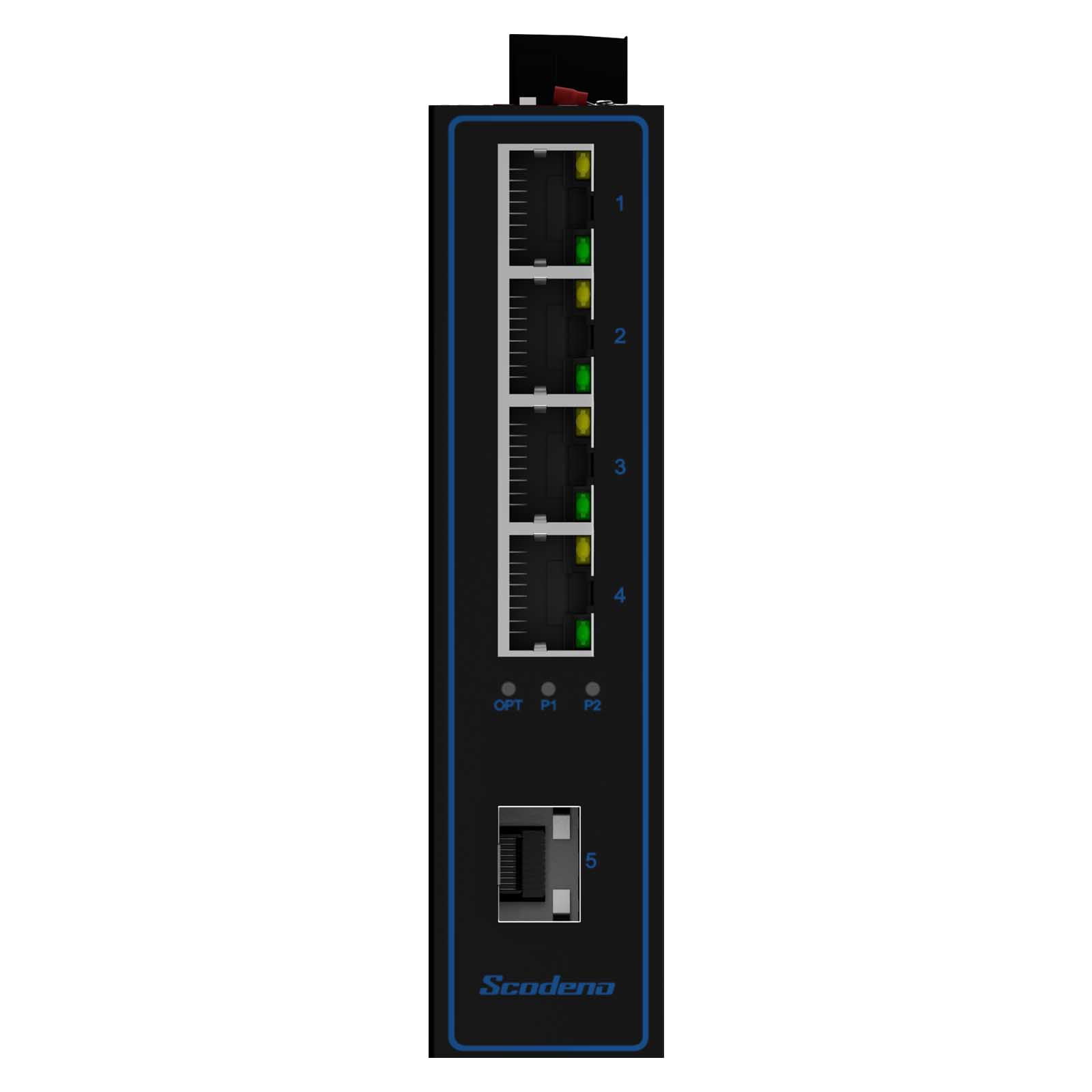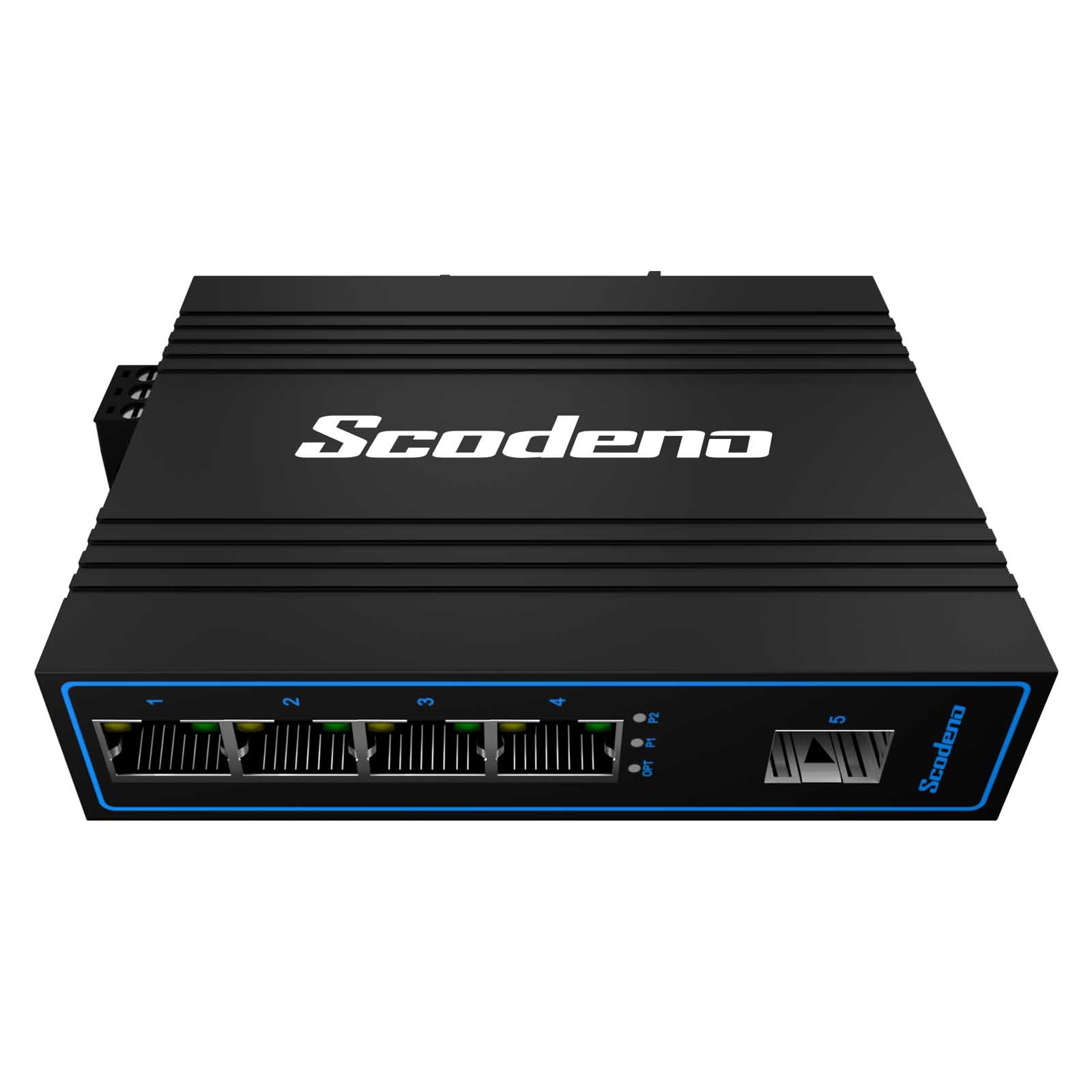 Przemysłowe przełączniki Ethernet PoE marki Scodeno posiadają bezwentylatorową konstrukcję obwodu rozpraszania ciepła, szeroki zakres temperatur pracy oraz wysoki poziom ochrony (odporność na wstrząsy, pyłoszczelność itp). Switche zapewniają doskonałą jakość przemysłową z odpornością na wysokie i niskie temperatury, ochronę odgromową oraz zwiększoną niezawodność i bezpieczeństwo sieci przemysłowych.