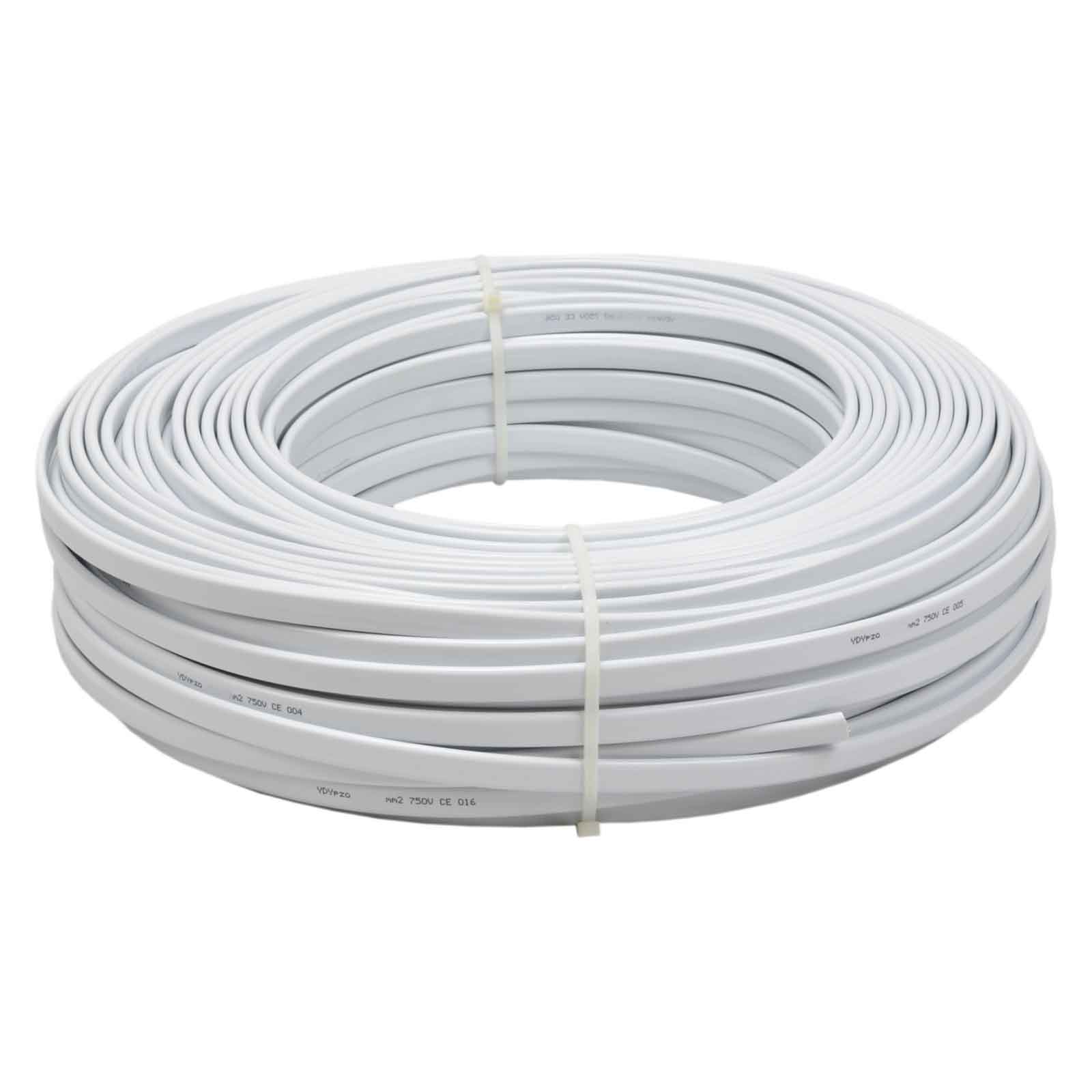 Przewód instalacyjny YDYp żo 450/750 V (3x2,5) płaski, drut rolka 100m, przewód o żyłach miedzianych jednodrutowych o izolacji i powłoce polwinitowej. Przewody o żyłach miedzianych, jednodrutowych o izolacji i powłoce z polwinitu zwykłego, płaskie, ogólnego przeznaczenia do układania na stałe. Zalecane zastosowanie: do układania na stałe w urządzeniach elektrycznych pracujących w środowisku suchym i wilgotnym, do układania pod tynkiem i na tynku.