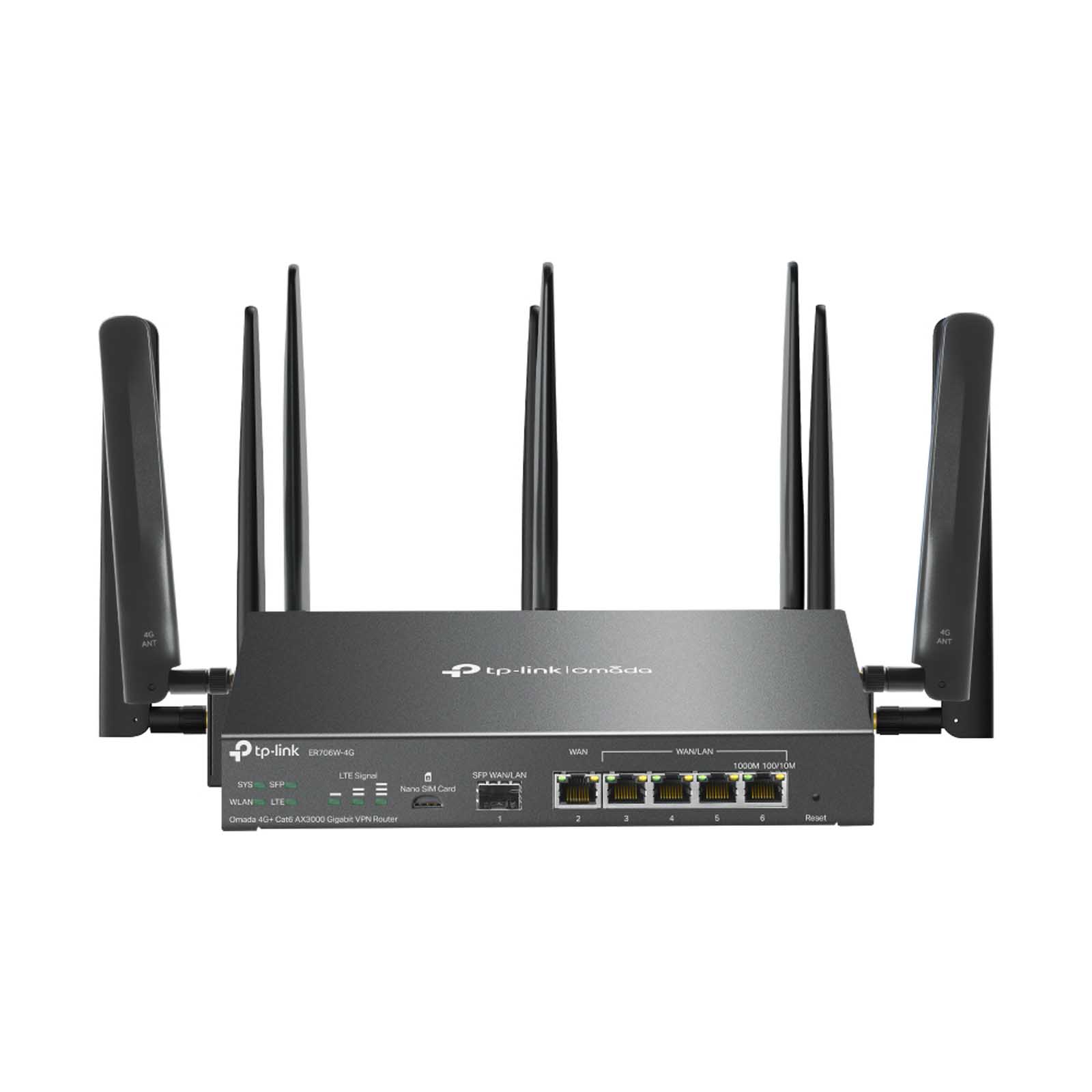 Gigabitowy router VPN Omada, 4G+ kat. 6, z WiFi AX3000, Multi-WAN z możliwością centralnego zarządzania i z równoważeniem obciążenia pasma  |